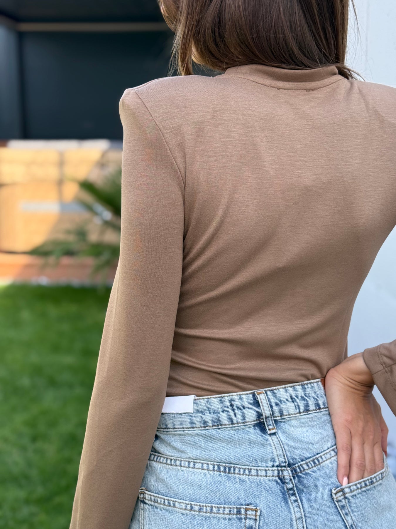 Елегантно и универсално боди в топъл нюанс, което приляга като втора кожа. Перфектната основа за всеки стил – от ежедневна визия до по-елегантна комбинация.