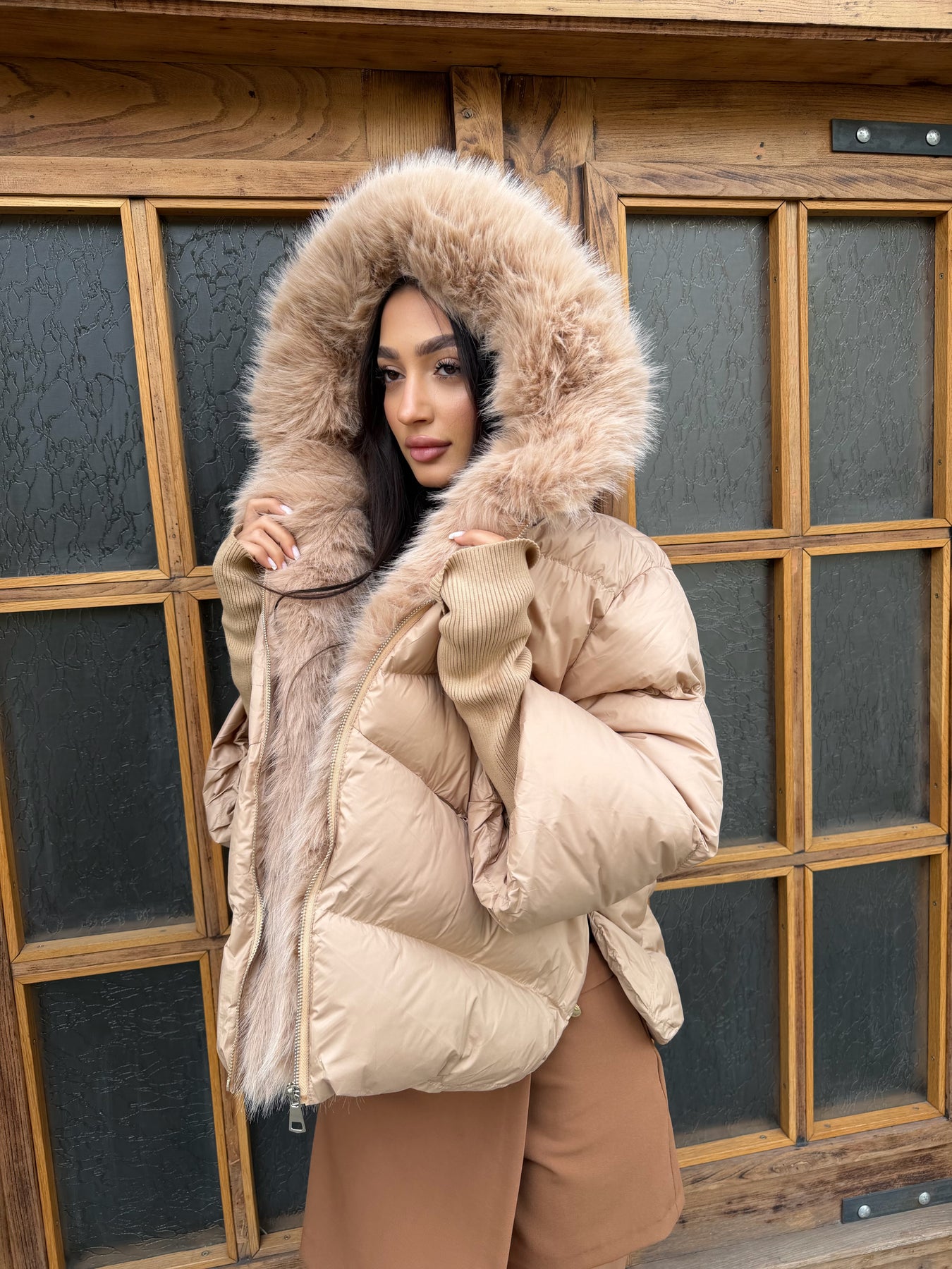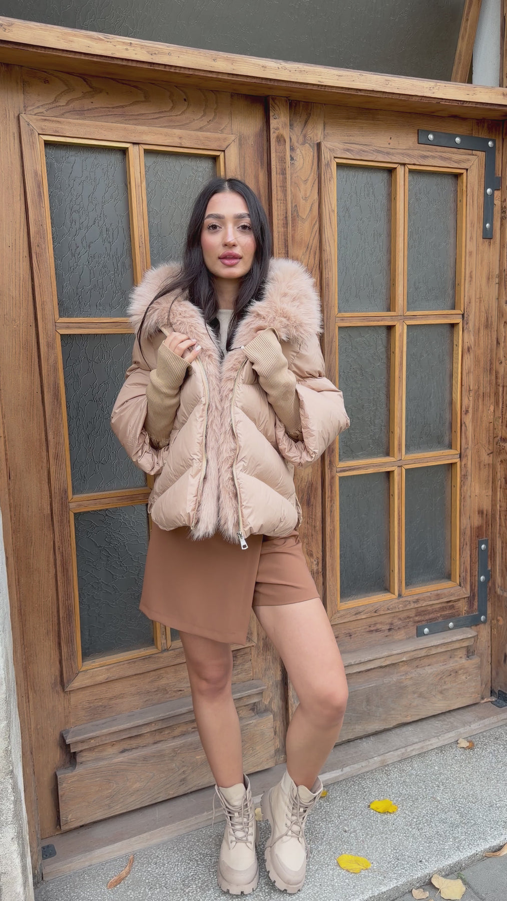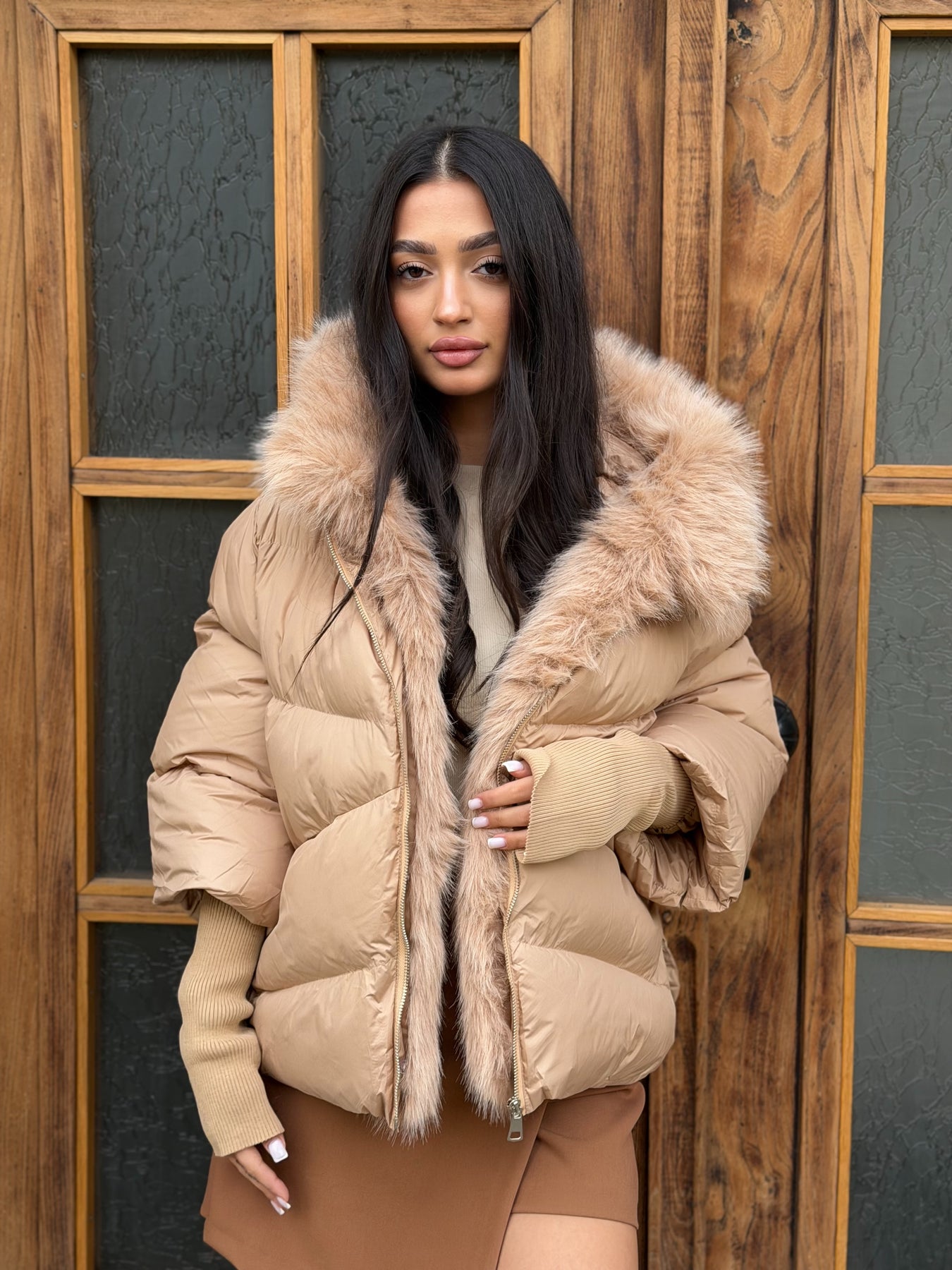 Луксозен вид и комфорт в едно –CALISTA е пухено яке в наситен шоколадов нюанс, което effortlessly съчетава стил и практичност. Меката му материя и топлата подплата го правят идеален за студените дни, а подвижният еко косъм по яката придава изтънчен акцент, който можеш да адаптираш според визията си.