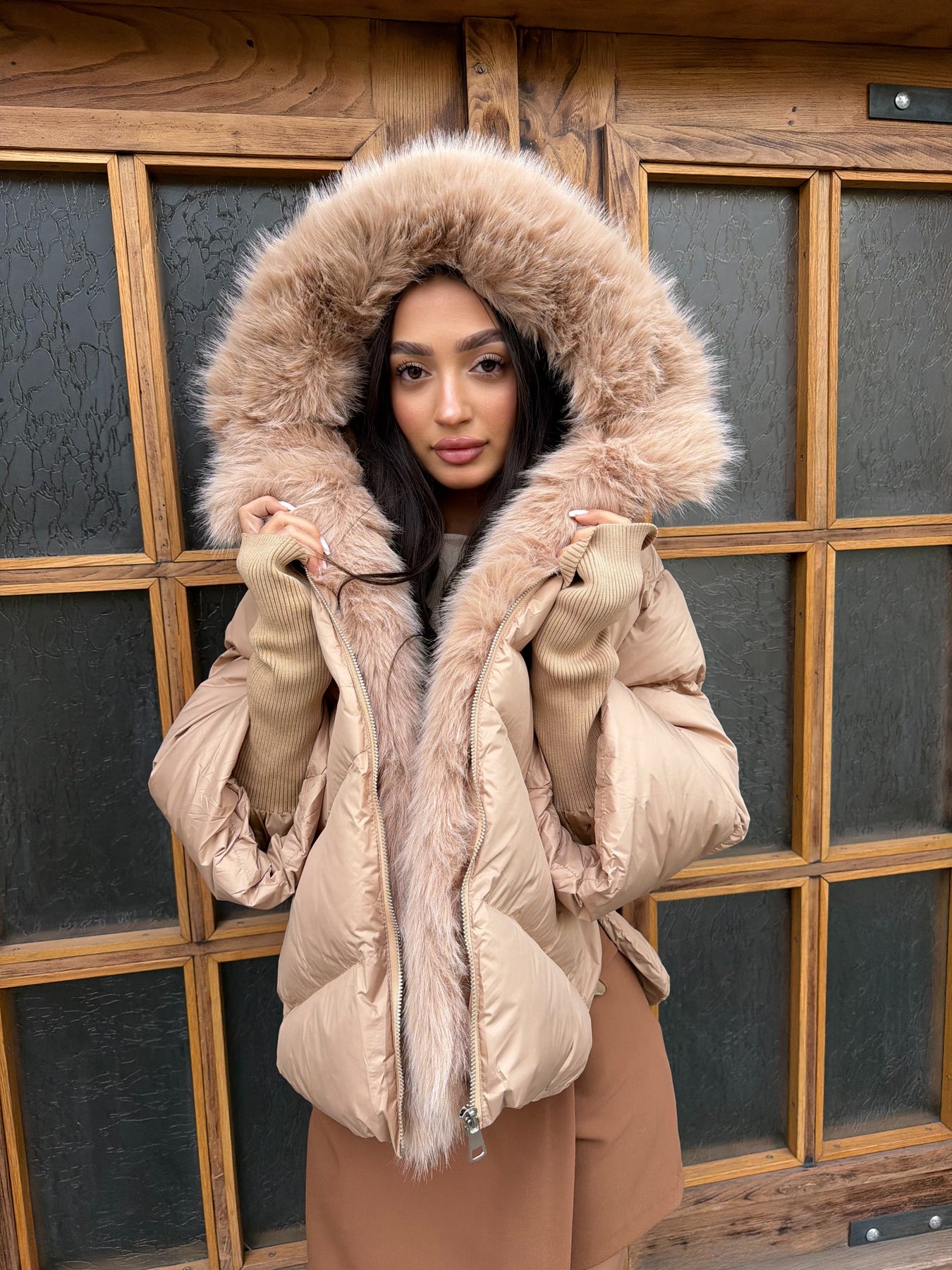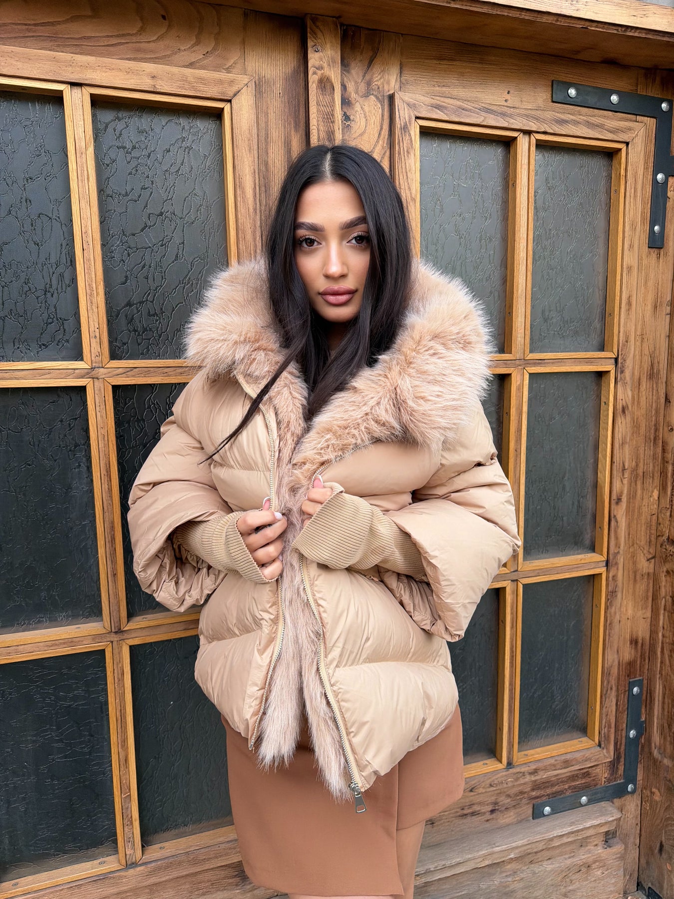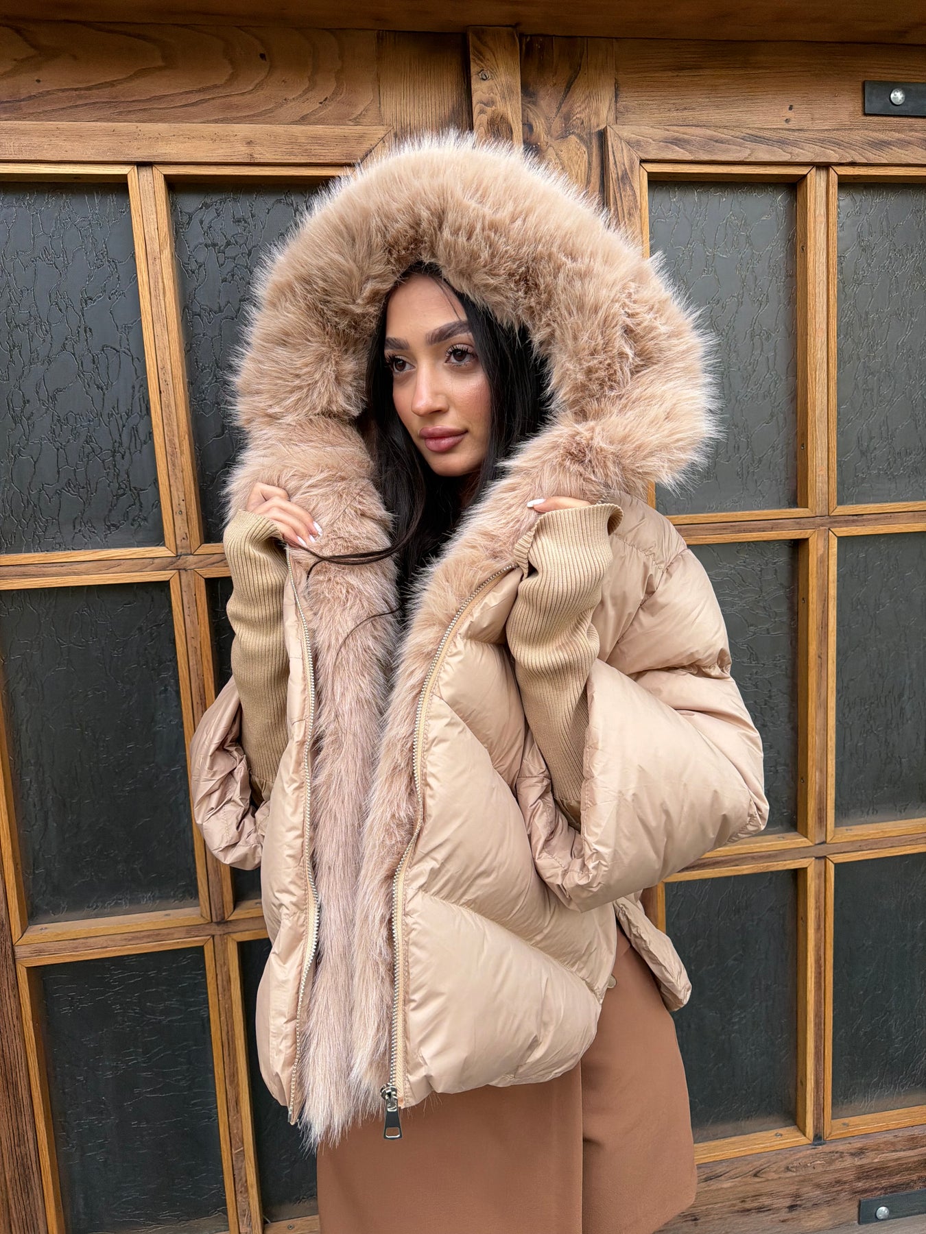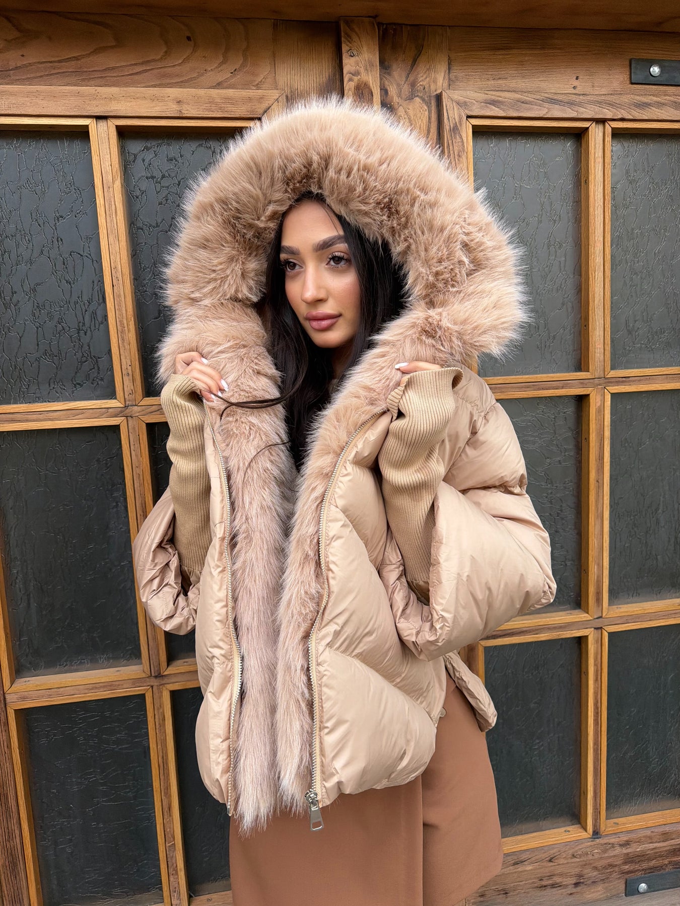Луксозен вид и комфорт в едно –CALISTA е пухено яке в наситен шоколадов нюанс, което effortlessly съчетава стил и практичност. Меката му материя и топлата подплата го правят идеален за студените дни, а подвижният еко косъм по яката придава изтънчен акцент, който можеш да адаптираш според визията си.