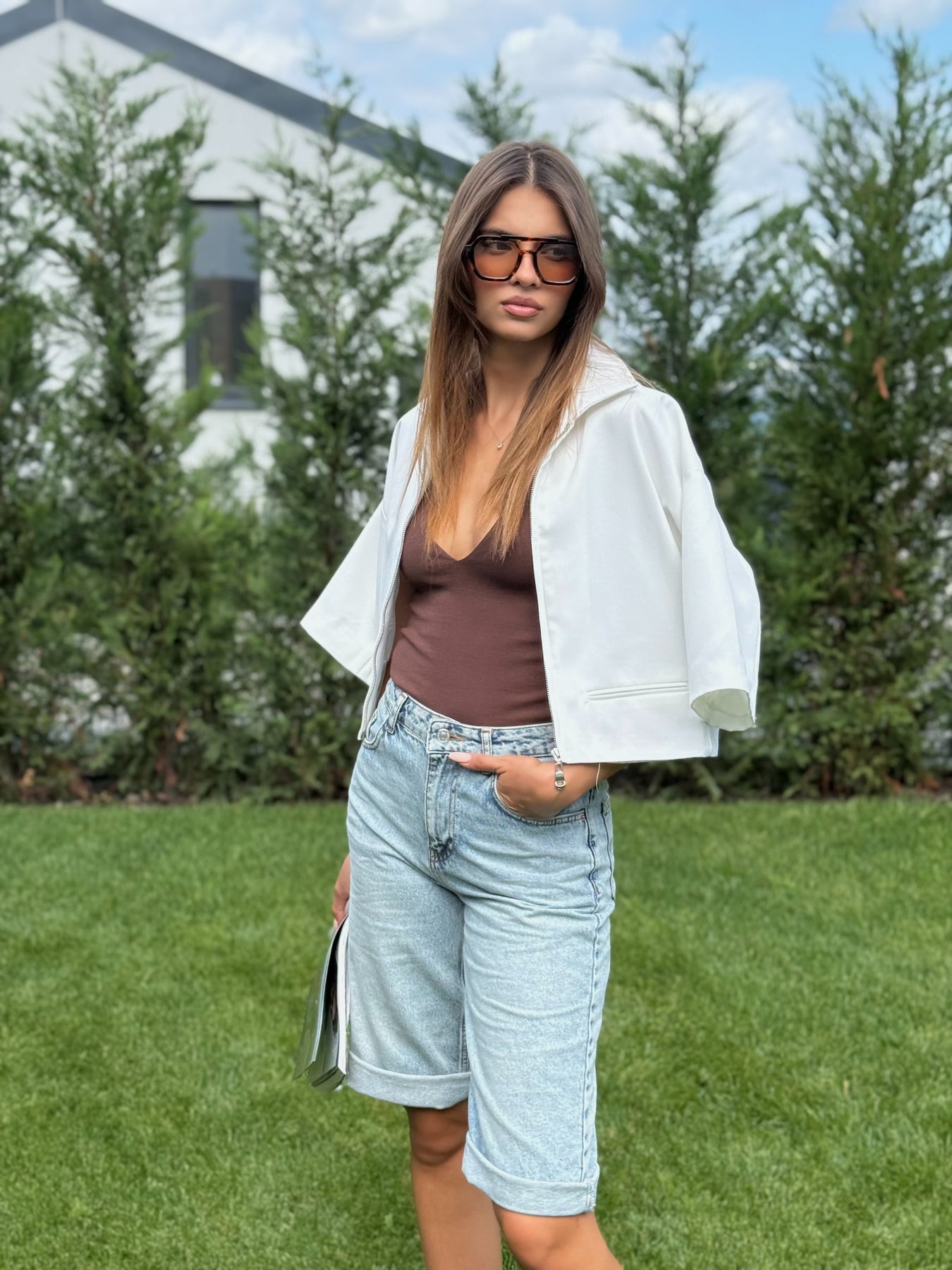 Тези къси дънки са създадени за жената, която обича комфорта, но и не прави компромис със стила. Леката им деним материя и свободната кройка ги превръщат в универсален избор за летни дни – от разходка в града до по-елегантна визия с риза или сако.