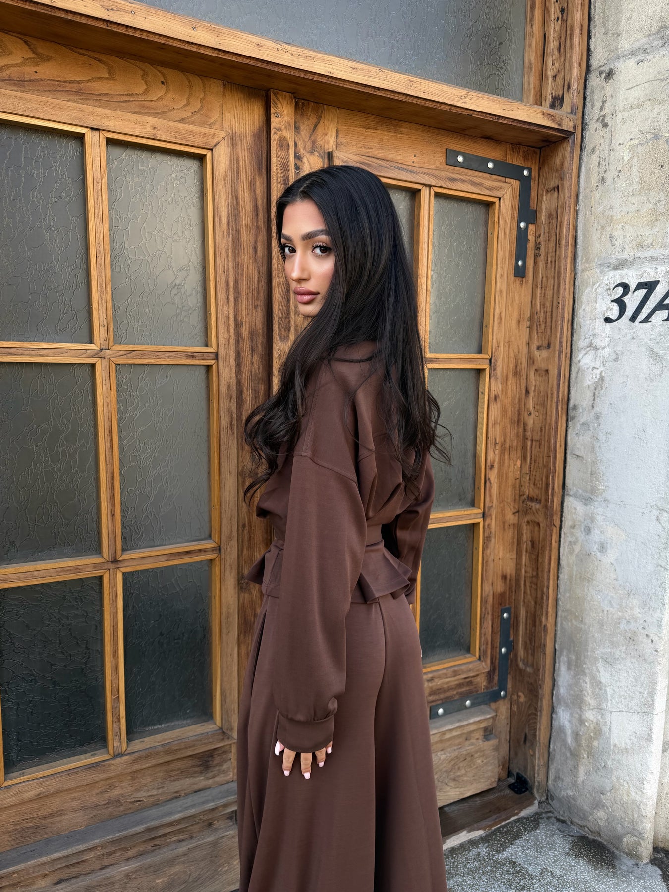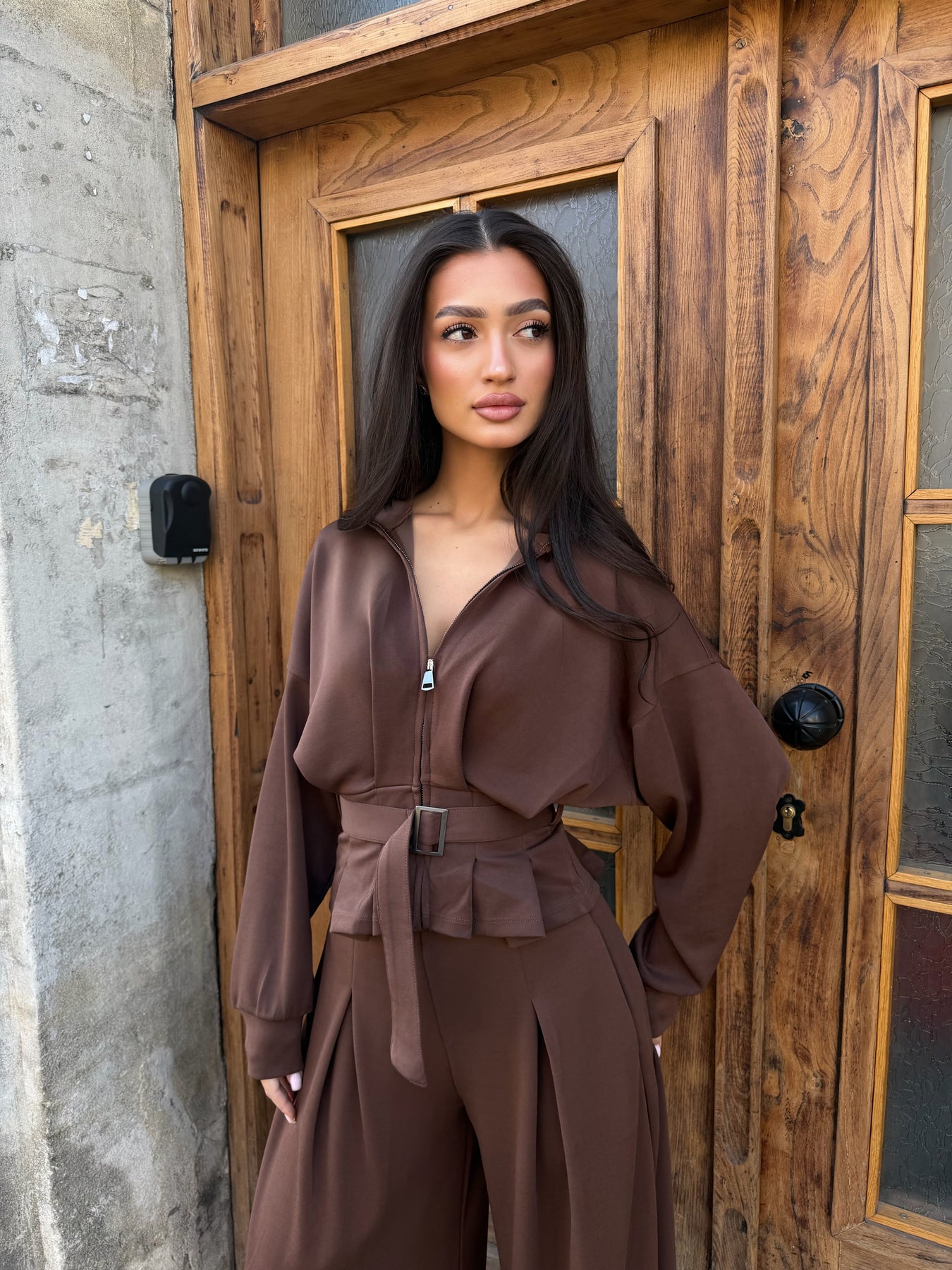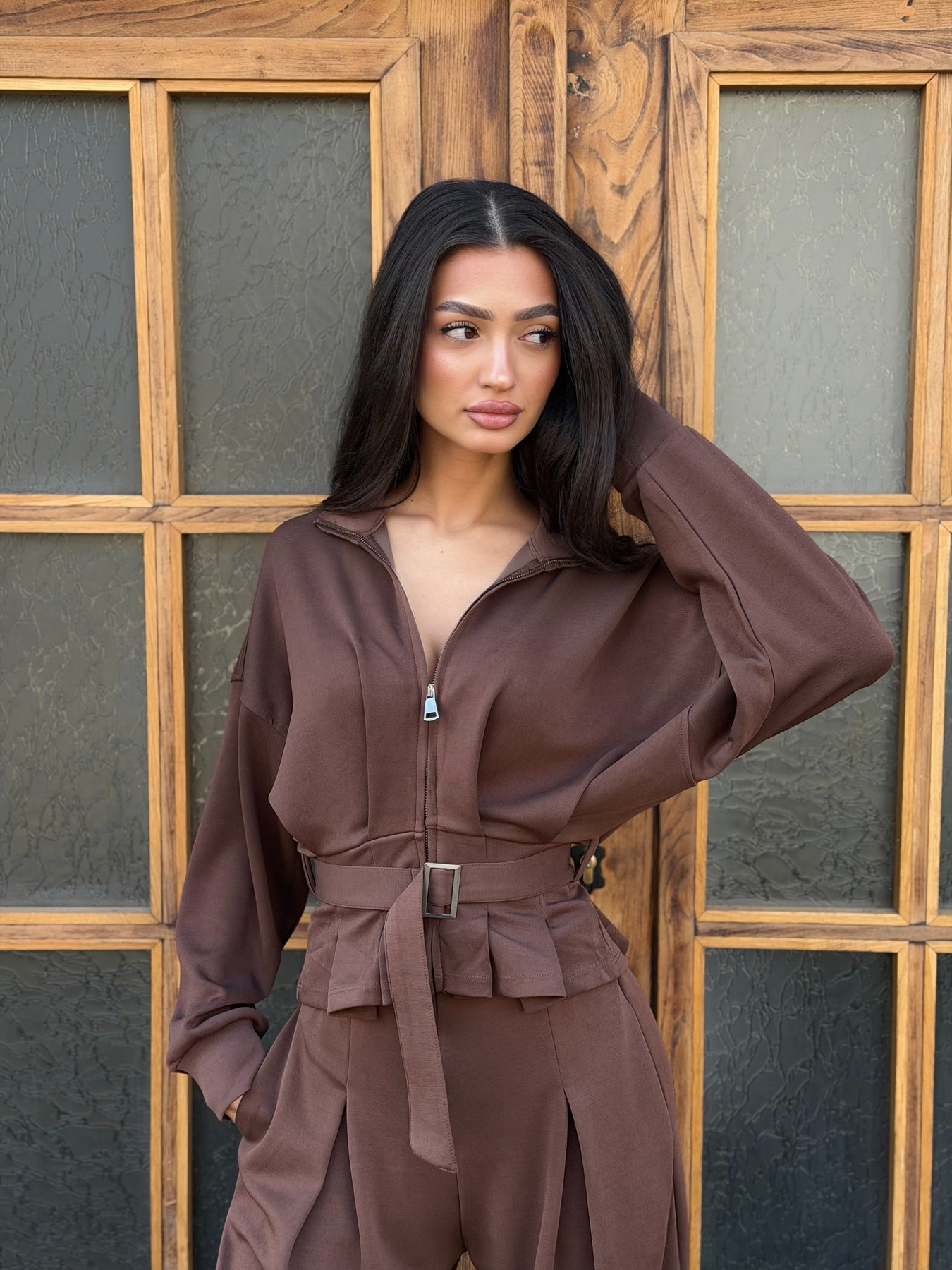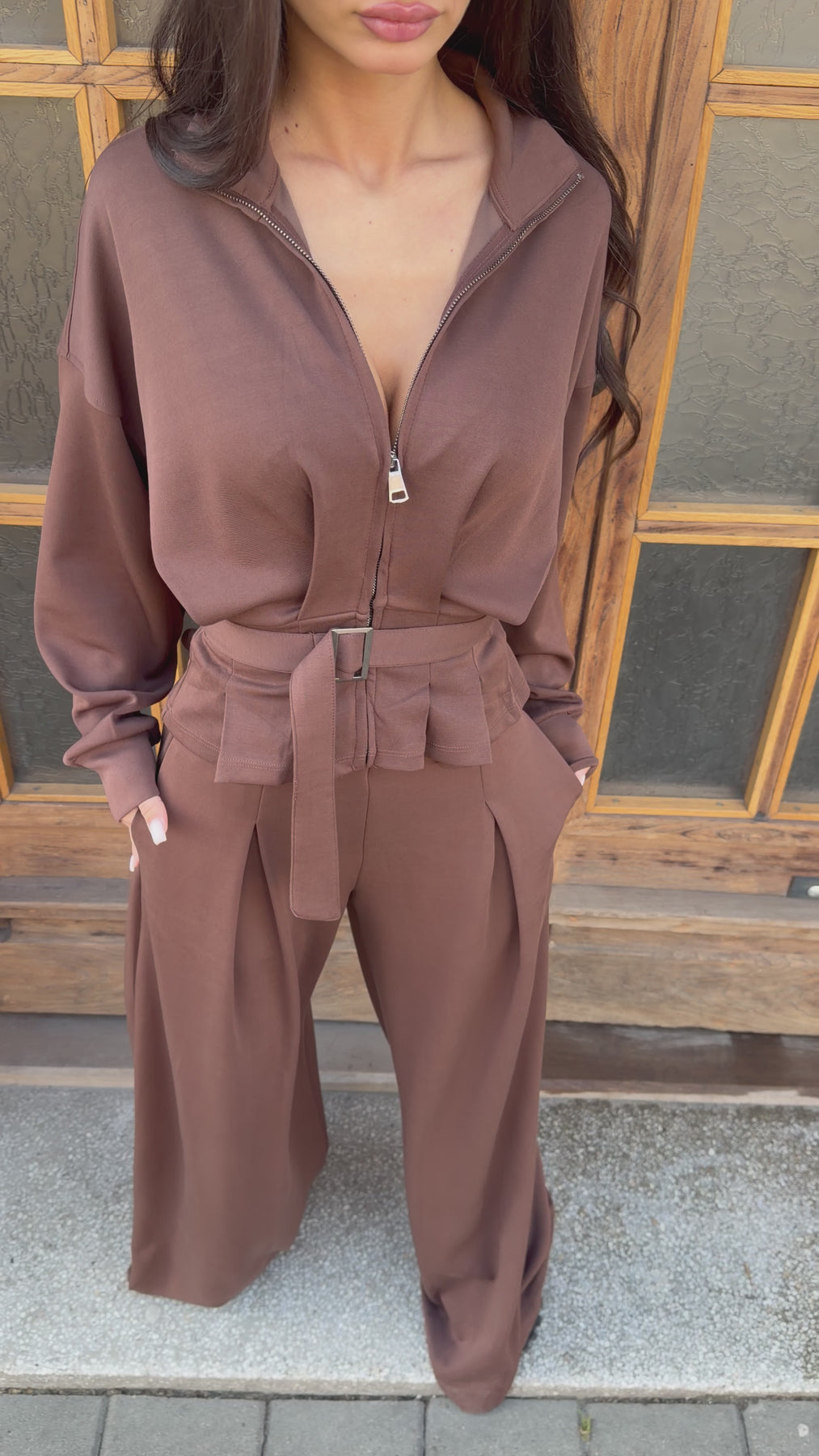 Елегантен сет с акцент в талията, който подчертава силуета и придава силно, модерно излъчване. Изчистената линия и изискана визия – идеална както за градски шик, така и за вечерни поводи.