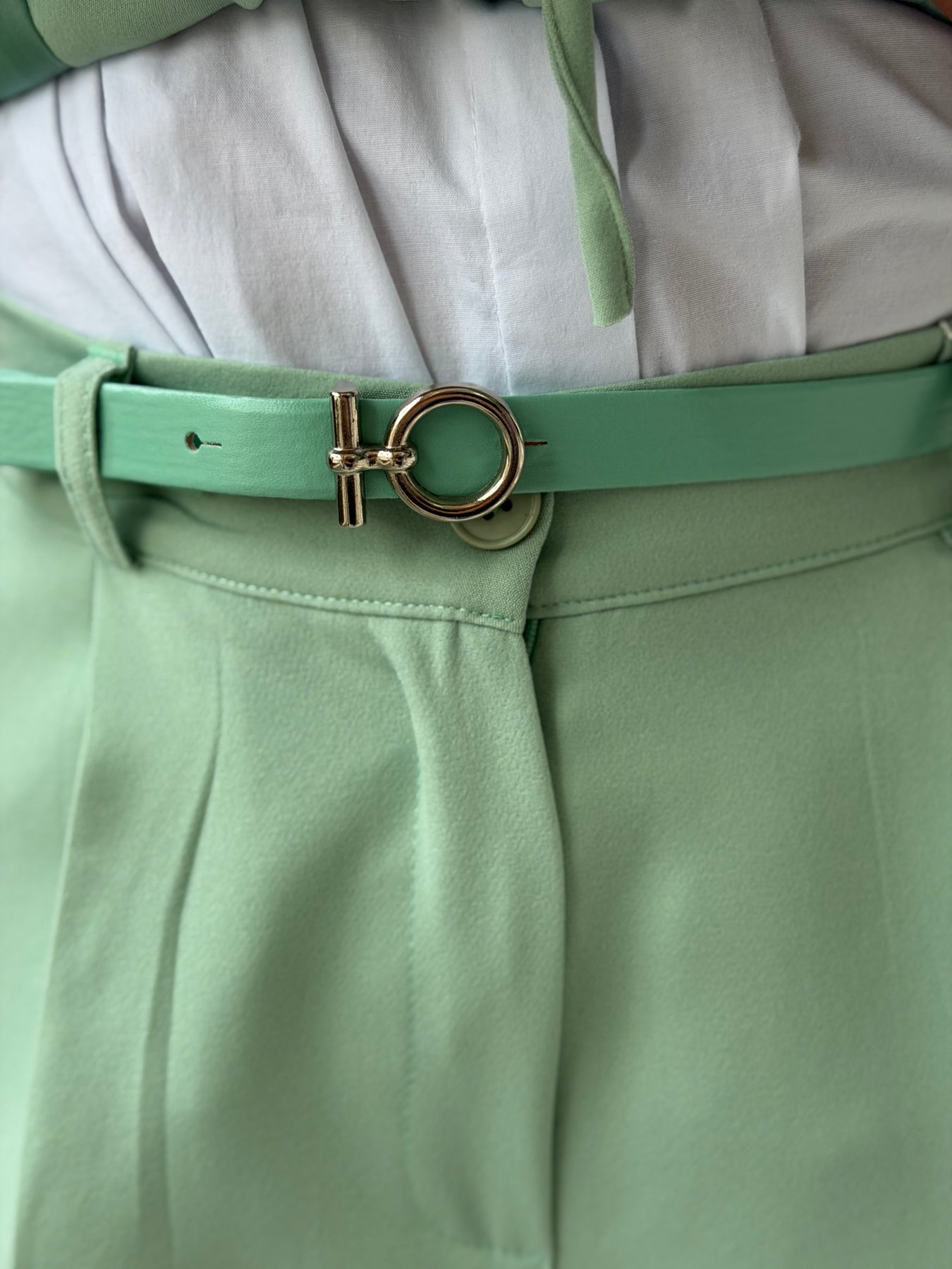 • Детайли: колан с декоративна тока, странични джобове, подгънат подгъв