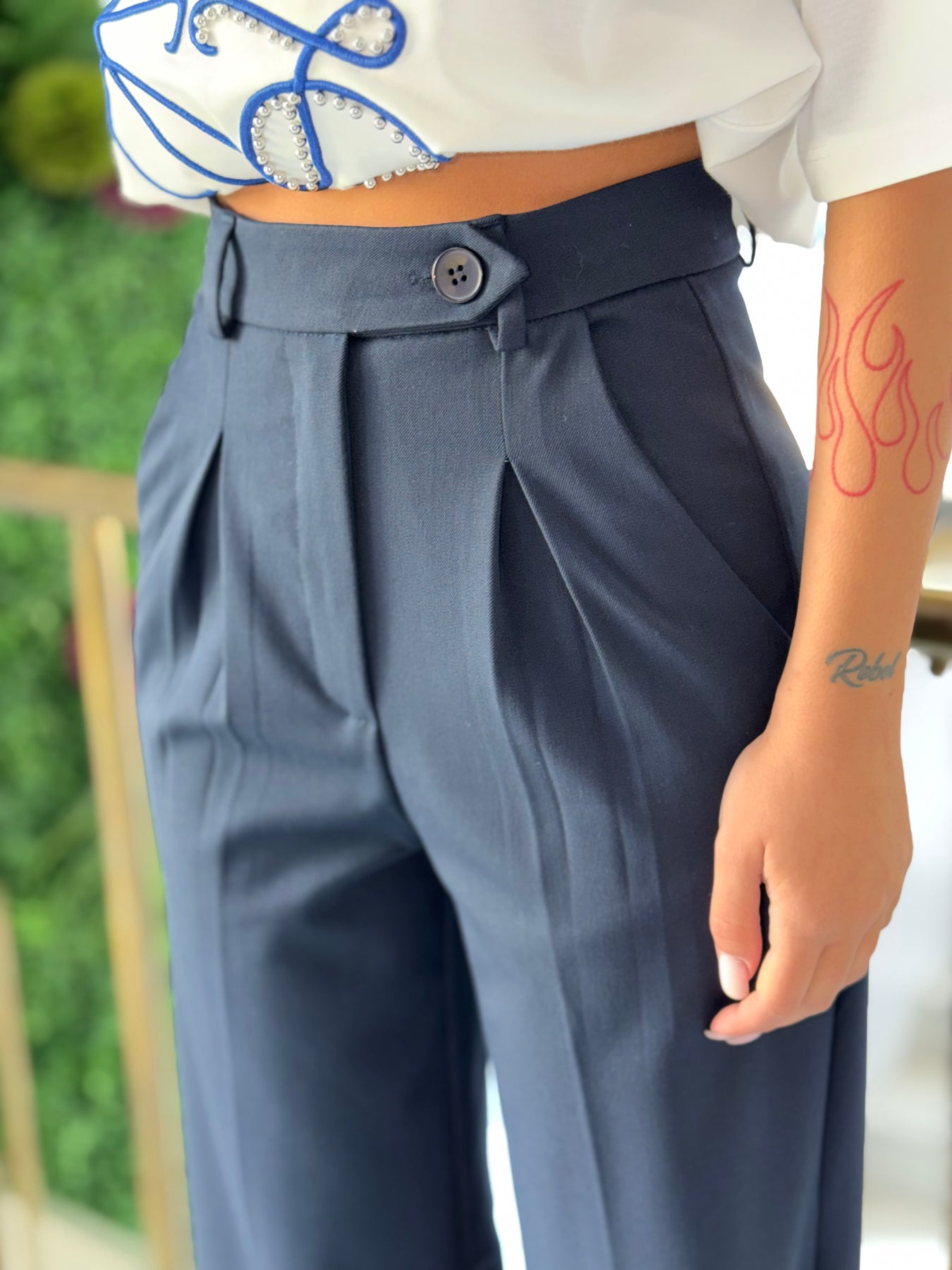Елегантен панталон с висока талия и прав крачол, който издължава силуета и придава изискано, модерно излъчване. Изчистената линия и меката, стабилна материя го правят перфектен избор както за офис визии, така и за стилни градски комбинации.