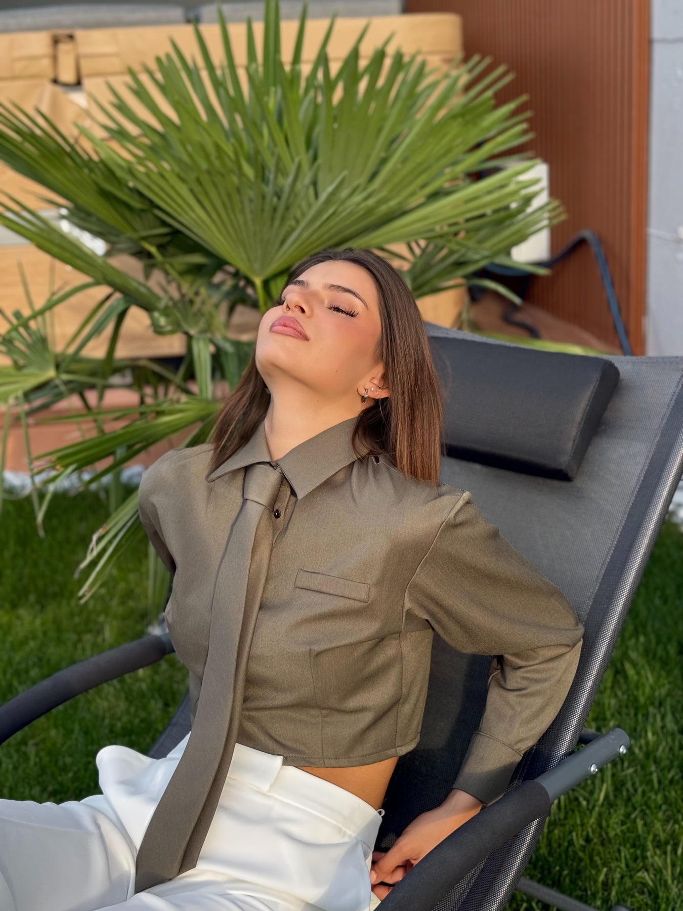 Елегантна риза-кроп, която ще внесе изтънченост във всяка комбинация – от офис до вечерна среща. Акцентът е върху дългата връзка в предната част, придаваща стил и характер.