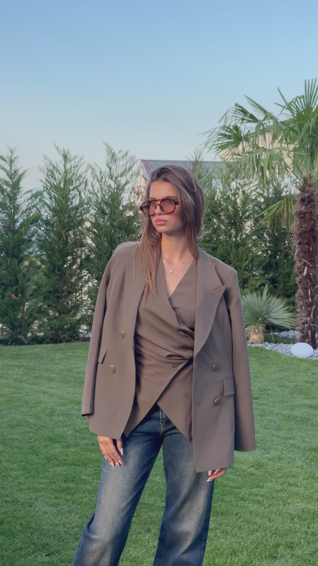 • Детайли: Двуредово закопчаване с копчета, джобове с капаци